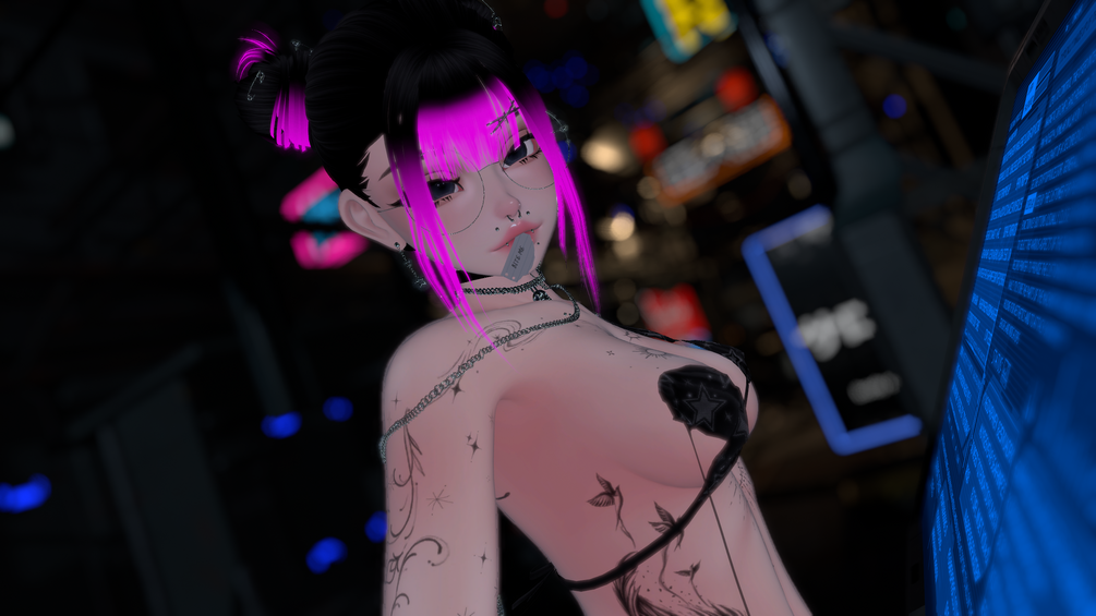 ACCS: Back Ribbons (hue) , Leg Ribbons (hue) , Cheek Stickers (hue), Forehead Stickers (hue), Belly Piercing (hue), Body Piercings, Nip Piercing, Bottom Lip Piercing, Upper Lip Piercing, Fang Piercing, Septum Piercing, Choker, Leash, Glasses with Various Lenses, Earrings, Mouth Paper, Rings